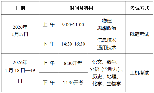 2025-2026学年度第一学期普通高中学业水平合格性考试及报名通知