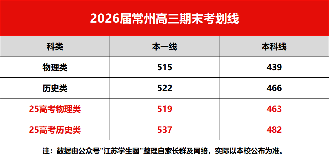 数据说明:分数线是根据常州高三期末划线利用线差法计算而来,仅供参考。