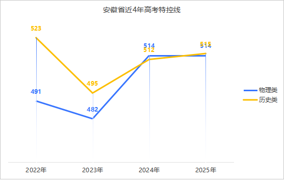 2022-2025年安徽省高考物理类、历史类特控线汇总